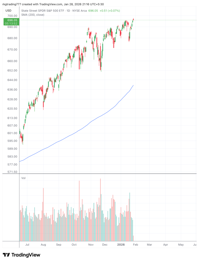 Markets showing weakness January 28, 2026January 28, 2026 by admin Uncategorized Short SPY for 650. Bearish volume divergence, distribution, no demand.
